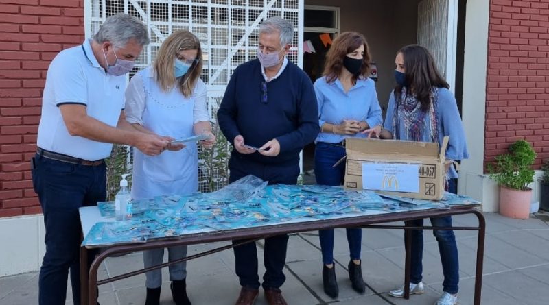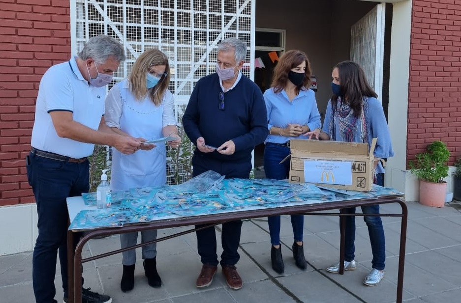 La donación fue realizada de la mano del intendente Héctor Gay, junto a Fabiola Buosi, presidenta del Consejo Escolar, y el operador de McDonald’s en Bahía Blanca, Diego Núñez.
