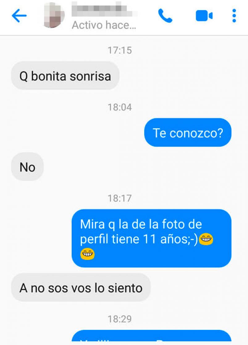 “Qué bonita sonrisa”, comenzó escribiendo. Y luego hizo preguntas para asegurarse de estar chateando con la niña: “¿Es tuyo el Face o lo usa tu mamá? ¿Ella te lee los mensajes?”. La madre, al notar que estaba ante un probable abusador de menores, decidió seguir el juego para poder escracharlo.