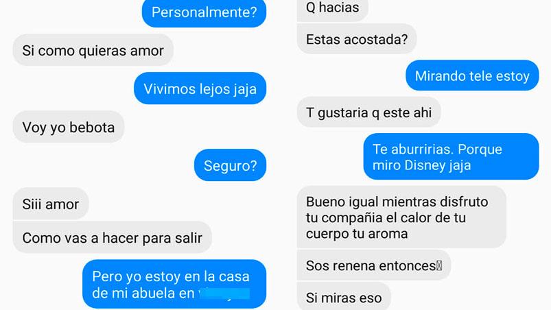 Pero no terminó allí. A pesar de reconocerle que tenía esposa y hasta una hija, el hombre insistió para coordinar una cita. Y le preguntó en reiteradas ocasiones cómo haría para escapar de su casa, sin que se entere su madre, el día que pudieran verse.