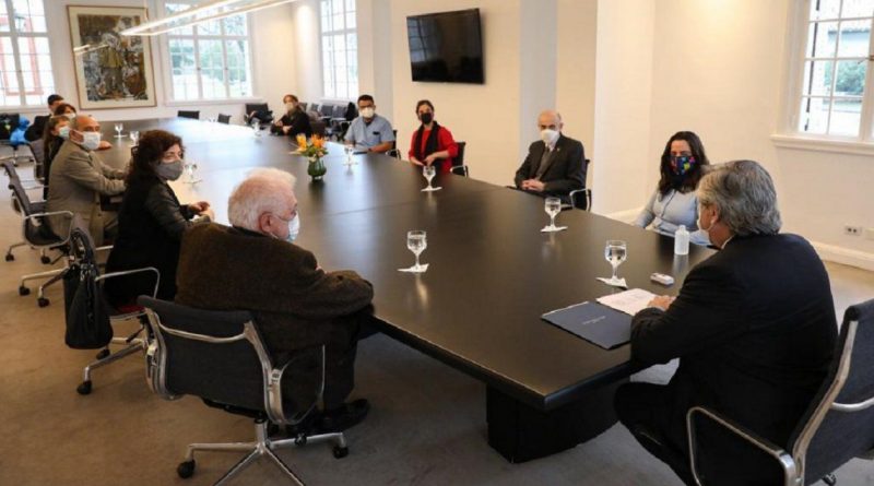 El presidente Alberto Fernández recibió esta tarde en la residencia de Olivos a un grupo de terapistas y trabajadores de la salud para interiorizarse sobre el trabajo que desarrollan en el marco de la pandemia de coronavirus COVID-19 y luego de la carta abierta difundida ayer por la Sociedad Argentina en Terapia Intensiva (SATI).