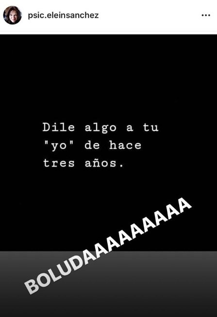 Además, subió una captura de otra usuaria con un pedido: “Decile a tu ‘yo’ de hace tres años“, se llega a leer. A lo que la protagonista de Siddharta, que en esa época estaba de novia con el futbolista, responde sin filtro: “Boludaaaaa“.
