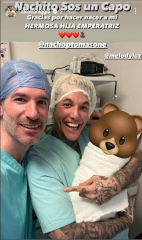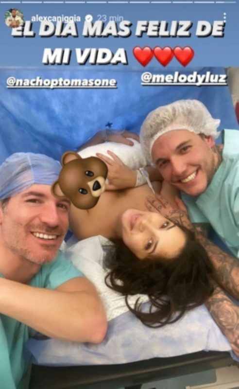 En primer lugar, Alex le agradeció al obstetra: “Nachito sos un capo. Gracias por hacer nacer a mi hermosa hija emperatriz”. Luego, compartió una postal donde también se la veía a Melody Luz y afirmó: “El día más feliz de mi vida”.