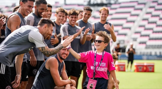 Como parte de la fundación “Make A Wish” (Pedí un deseo), el argentino recibió junto a sus compañeros del Inter Miami a un grupo de chicos de distintos países como Estados Unidos, Canadá e Israel en el estadio Chase del club de Florida, en donde compartieron el día con sus ídolos.
