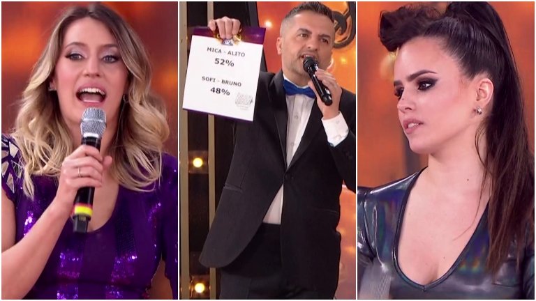 La votación del público fue muy pareja: tanto Mica como Sofi son muy queridas en las redes y tienen miles de seguidores. Pero a diferencia del Bailando 2018 cuando Morandi y Serrano eliminaron a Mica en un duelo telefónico, esta vez la ex Combate pasó a la siguiente ronda con el 52% de los votos.