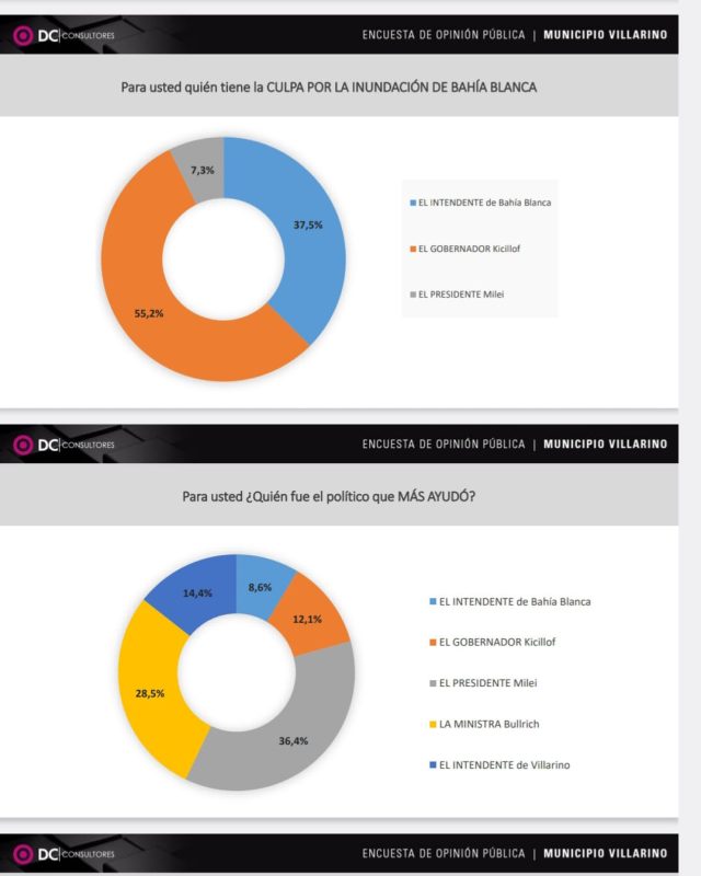 “Los bonaerenses despiertan. Pese a lo que vocifera el soviético (por Kicillof), el 55% de los bahienses lo ve culpable de las inundaciones, mientras que al Poder Ejecutivo Nacional solo el 7%”, mencionó el mandatario..