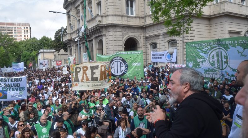 “Tenemos que conformar un frente de lucha que en la Argentina permita ponerle un freno a las políticas de entrega de este Gobierno. Los estatales, un empleado público que tenga hijos y que tenga que pagar alquiler no llega ni a mitad de mes”, reclamó.