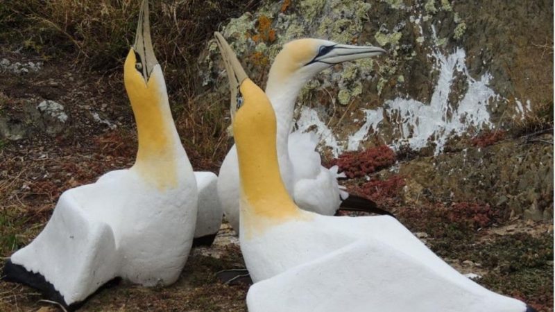 No obstante, ocurrió algo raro: Nigel no le hizo caso a los otros pájaros. Prefirió quedarse con su “mujer”, una de las 80 alcatraces de hormigón que los conservacionistas habían instalado en la isla hace años para intentar atraer a más pájaros.