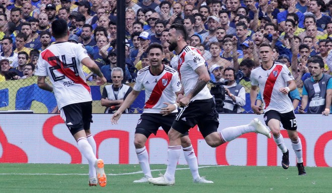 “Zapatazo de Wanchupen para fusilarlo a Armani, Boca… Boca 1, el gol lo hizo ¡no! no, no, no, no, no. El gol lo hizo, el gol lo hizo Wanchupen. Boca 1- River 1 porque acaba de empatar Pratto”.