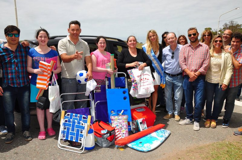 Pintos, llegó para disfrutar del día de playa y de la tercera jornada de la Fiesta de la Cerveza en una Suran negra, patente KKC 793, y llenó el baúl con más de cuarenta obsequios de distintos comercios locales.