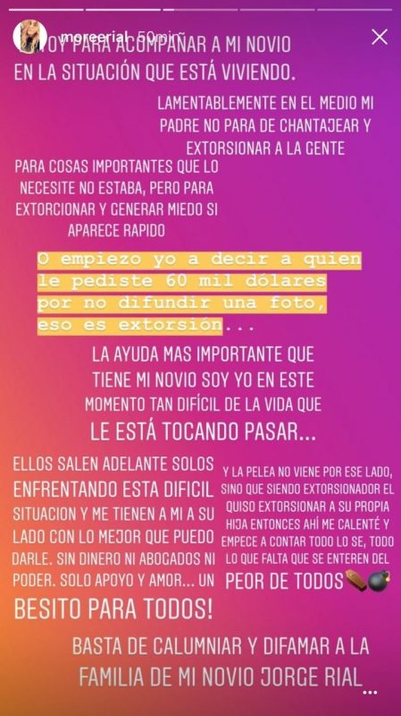 Sin embargo, Morena salió a aclarar las cosas en Instagram y aprovechó para acusar a su padre de “extorsionador”.
