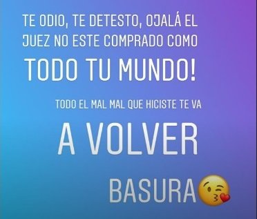 Por si quedaban dudas de la mala relación que mantiene con Rial, More puso énfasis en sus sentimientos de “odio” hacia él y volvió a hacer referencia al perfil de extorsionador del que lo había acusado en otras oportunidades: “Te odio, te detesto, ojalá el juez no esté comprado como todo tu mundo. Todo el mal que hiciste te va a volver, basura”, escribió.