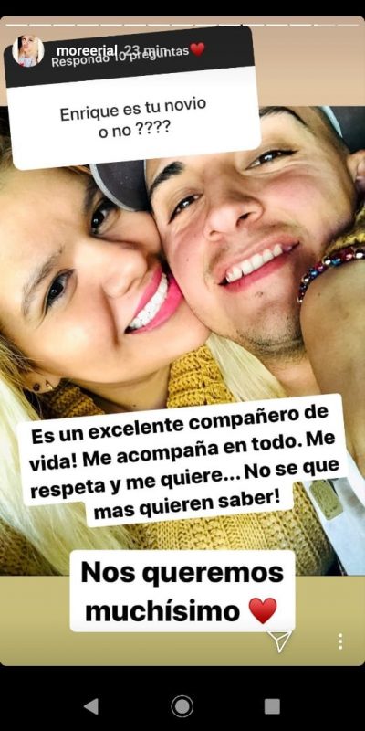 Hoy, Morena Rial permitió que algunos fans le preguntasen cosas y una le consultó por su relación con Enrique. “¡Es un excelente compañero de vida! Me acompaña en todo. Me respeta y me quiere… Nos queremos muchísimo“, contestó la hija de Jorge.