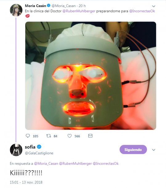 La imagen fue tan shockeante que hasta causó la reacción de su hija Sofía Gala, quien se mostró sorprendida por lo que tenía su mamá en la cara. Según contó la diva, se trata del tratamiento “Skin Light” para tener más luminosidad en el rostro.