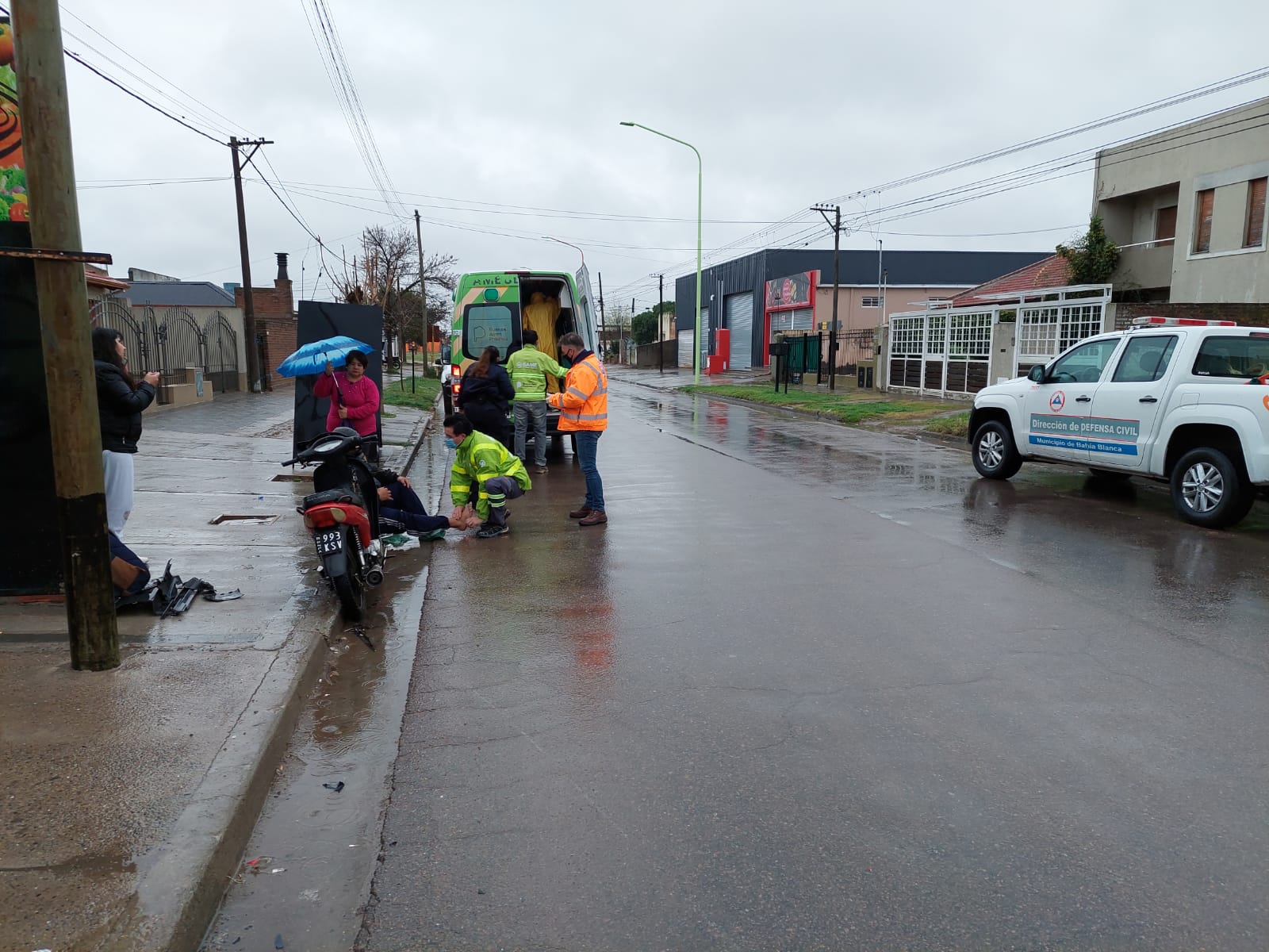 Una moto colisionó con un auto en Zelarrayán al 2800 y atropelló a una mujer que esperaba el colectivo, informaron fuentes policiales.