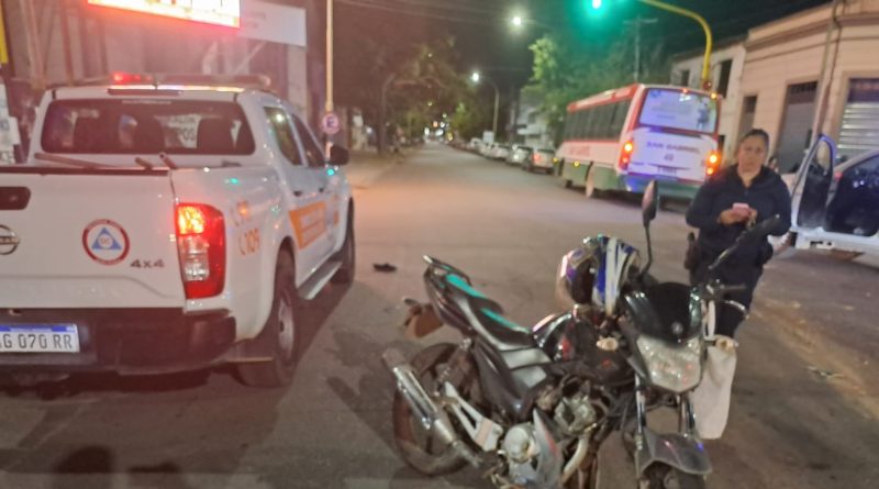 En la esquina de Falucho y Parchappe se produjo un choque entre un colectivo del transporte público, conducido por un joven de 31 años, y una moto guiada por un hombre de 36 años.
