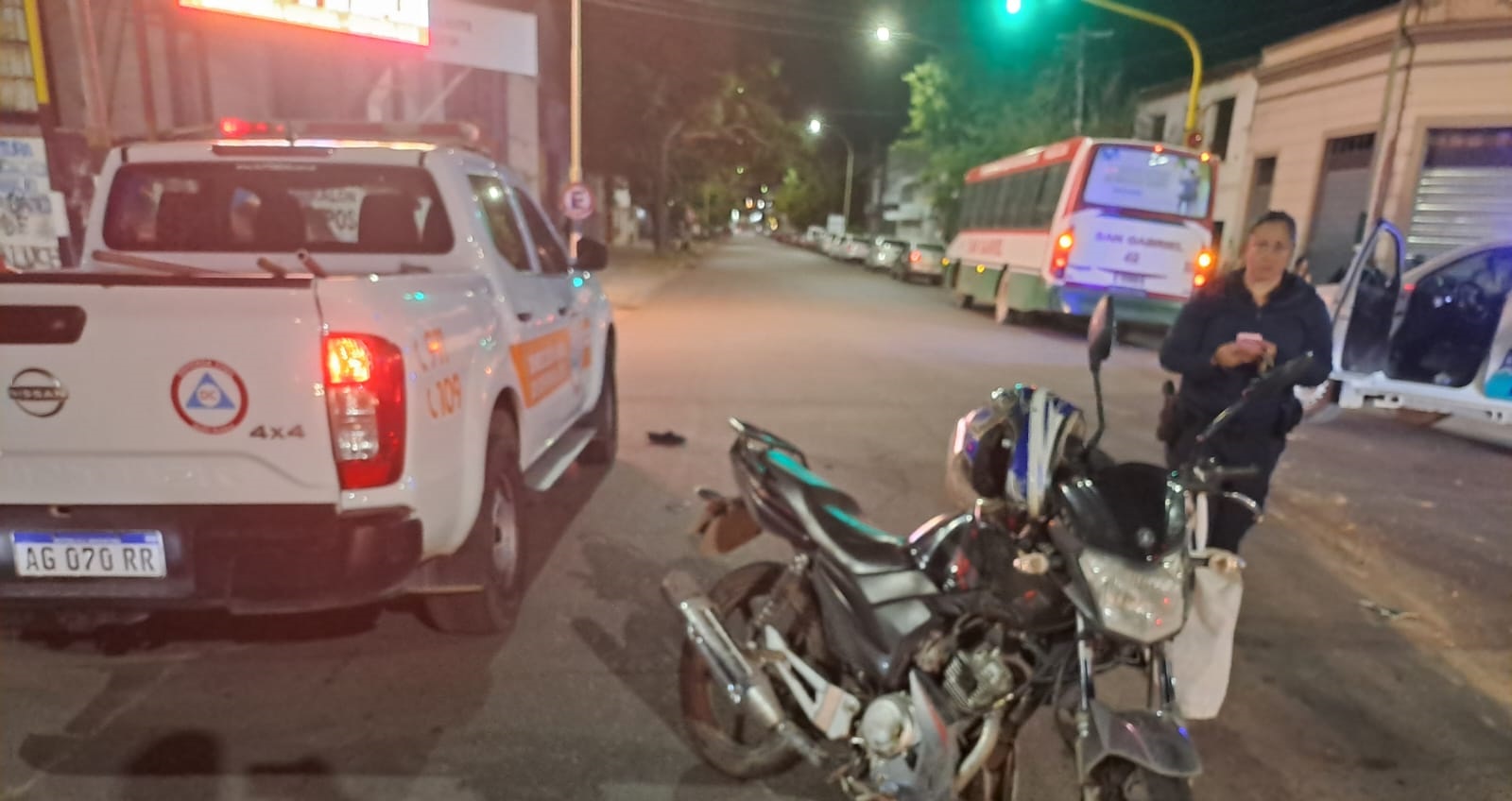 En la esquina de Falucho y Parchappe se produjo un choque entre un colectivo del transporte público, conducido por un joven de 31 años, y una moto guiada por un hombre de 36 años.