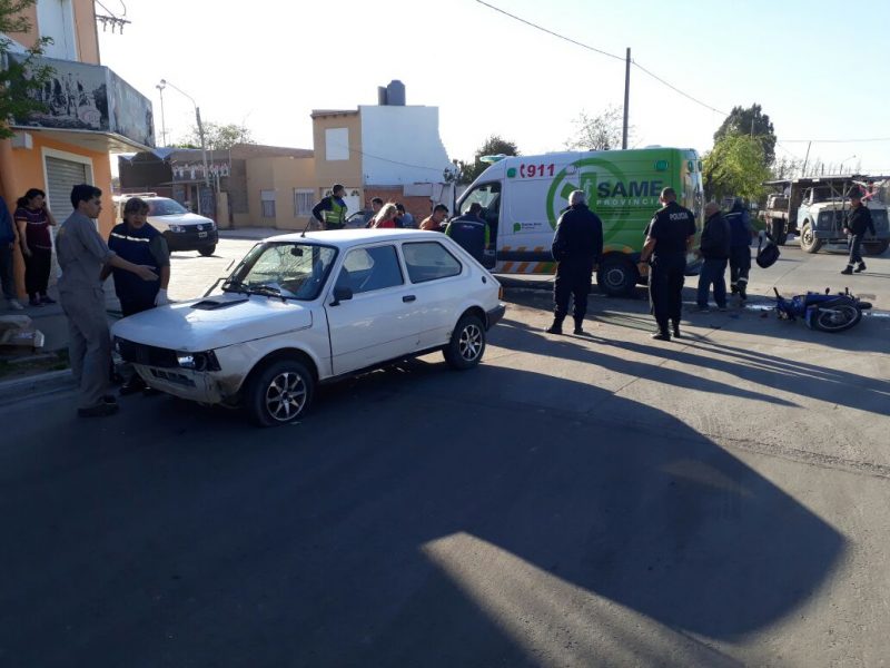Una mujer sufrió un traumatismo en una de sus piernas tras chocar la moto que conducía contra un auto en Charlone y Santa Cruz.
