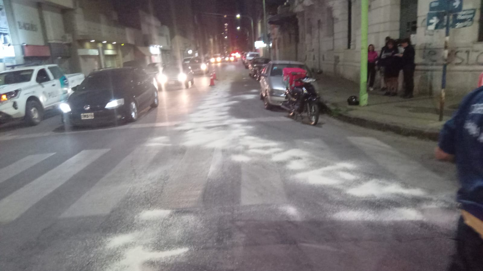 Una chica de 18 años perdió el mando de su Keller 110cc en Martiniano Rodríguez y Mitre al resbalar con una mancha de aceite de unos 70 metros aproximadamente.