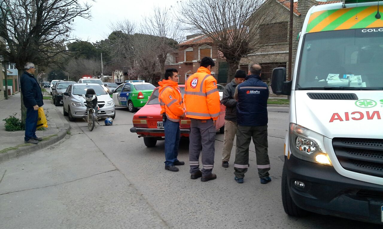 Un motociclista de 37 años debió ser atendido por una ambulancia este viernes luego de colisionar con un auto en Florida 1100.