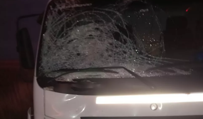 El camión, que se dirigía desde Suárez a Lamadrid, tiene un fuerte golpe en el parabrisas del lado del acompañante.