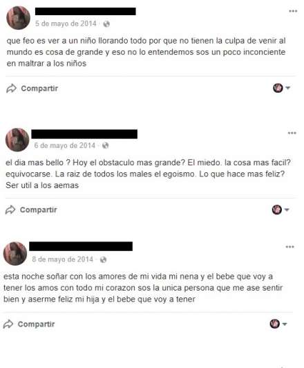 Pero lo que más llama la atención son los mensajes en la cuenta de Facebook de la mujer. En el muro hay posteos que hacen alusión al amor que siente por sus hijas y otros en los que se muestra en contra del maltrato infantil.