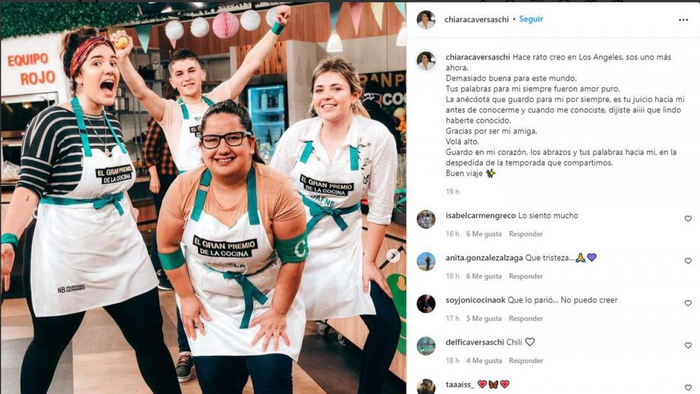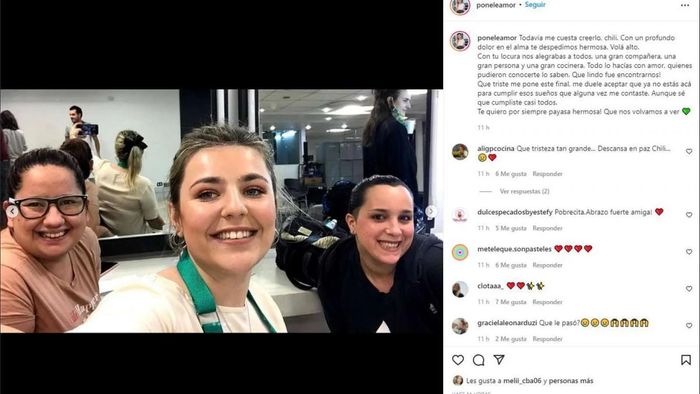 Dafne Frione, también ex compañera, le dedicó otro sentido mensaje: “Todavía me cuesta creerlo, Chili. Con un profundo dolor en el alma te despedimos, hermosa. Volá alto. Con tu locura nos alegrabas a todos, una gran compañera, una gran persona y una gran cocinera. Todo lo hacías con amor, quienes pudieron conocerte lo saben. Qué lindo fue encontrarnos, que triste me pone este final. Me duele aceptar que ya no estás acá para cumplir esos sueños que alguna vez me contaste. Aunque sé que cumpliste casi todos. ¡Te quiero por siempre payasa hermosa! Que nos volvamos a ver”.