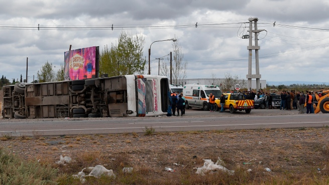 Murió una mujer y hay 19 heridos tras el vuelco de un micro con hinchas de Boca