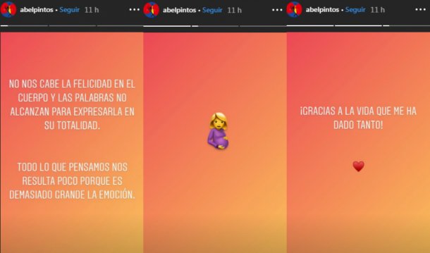 Pocos días después del anuncio, Abel Pintos había hablado por primera vez sobre la paternidad: “Es el milagro más grande que seguramente haya experimentado. Muchos amigos me habían dicho ‘el día que seas padre vas a ver, es algo que no te puedo explicar’ y tenían mucha razón”, expresó.
