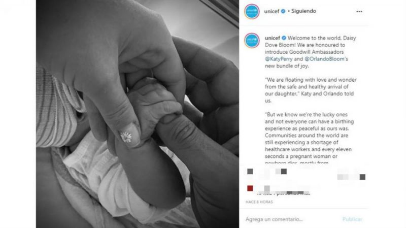 La cantante Katy Perry y su pareja, el actor Orlando Bloom, han sido padres de una niña, Daisy Dove Bloom, una feliz noticia que ambos han querido comunicar este jueves a través de la cuenta de Instagram de Unicef.