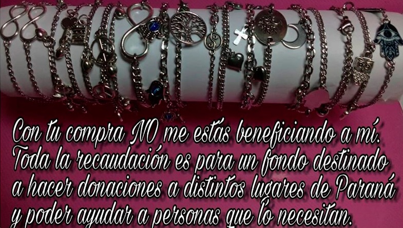 “Con tu compra no me estas beneficiando a mí. Toda la recaudación es para un fondo destinado a hacer donaciones a distintos lugares de Paraná y poder ayudar a personas que lo necesiten”, dice la publicación que figura en la cuenta de Facebook de Nahir.