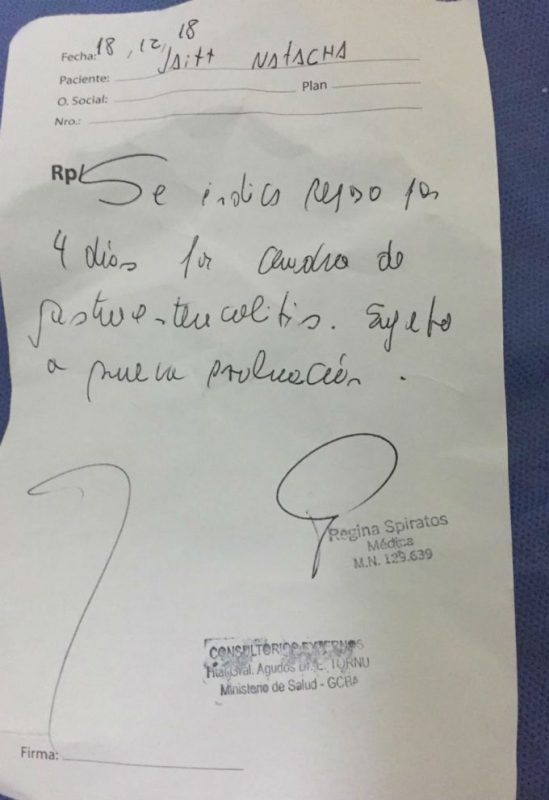 Según se pudo saber, la conductora está detenida en la Comisaría Nº 37, en el barrio porteño de Villa Urquiza. El conflicto en la vía pública se dio cuando el policía quiso notificarla a Natacha de una causa judicial y le impidió el ingreso a su domicilio. Jaitt le mostro el certificado de reposo pero, según reveló su hermano, el oficial la zamarreó del brazo. Además de detenerla, quieren obligarla a declarar por una causa judicial.