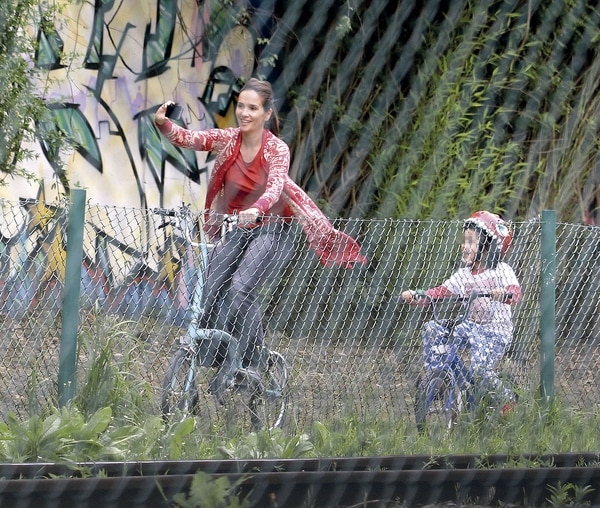 Mamá y el hijo –quien aprendió a andar gracias a las clases de papá Ricardo– salieron a pasear con sus respectivas bicis. Atahualpa, con su casco con forma de dinosaurio y sin las rueditas, fue el centro de las fotos de Natalia en cada escala. Una de ellas, en la plaza cercana al Tren de la Costa, donde ambos posaron sonrientes para una selfie. (Infobae)