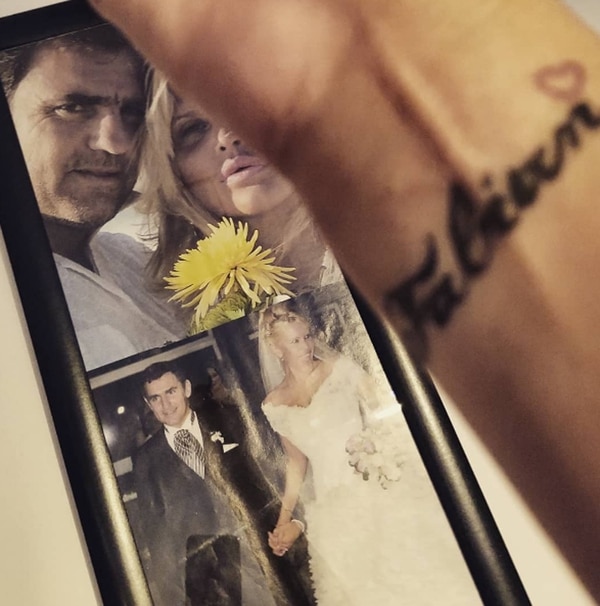 La actriz acompañó su posteo en Instagram con una foto de la boda, donde además muestra el tatuaje que tiene en la muñeca en honor a quien fuera su esposo.