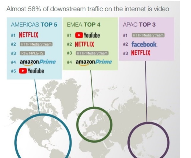 Es el rey del tráfico en internet por estos días, contabilizando el 57,69% del tráfico a nivel mundial, y quien se lleva la porción más grande de la torta es la plataforma de streaming más famosa: Netflix.