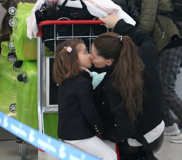 Los fotógrafos lo interceptaron en el aeropuerto. Y en una de las imágenes que lograron captar de su partida, se lo ve besar a Rufina. La perspectiva de la foto da la sensación de que Vicuña lo hace en la boca de la pequeña.