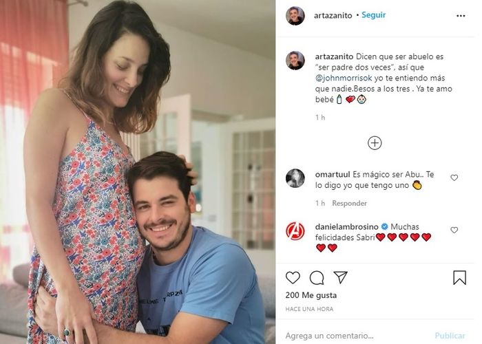“Dicen que ser abuelo es “ser padre dos veces”, así que @johnmorrisok yo te entiendo más que nadie.Besos a los tres . Ya te amo bebé“, expresó movilizado el productor teatral y pareja de Cecilia Milone.