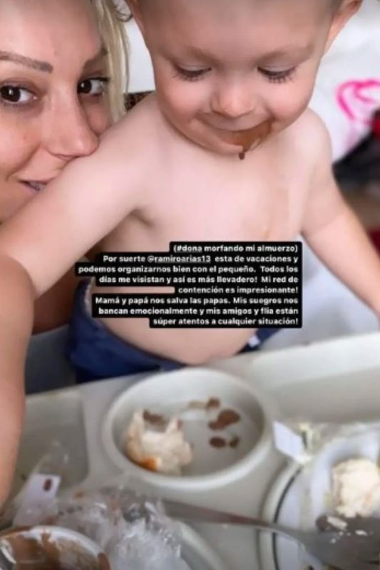 En otra historia, junto con una foto en la que se la ve abrazada a su hijo descansando, llevó tranquilidad a sus seguidores: “Estamos regias. Con exceso de cuidado y amor. Los amo”. Y sobre cómo estaba Donatello, agregó: “Casi como si supiera que me siento yo mal. Está hecho una seda”.