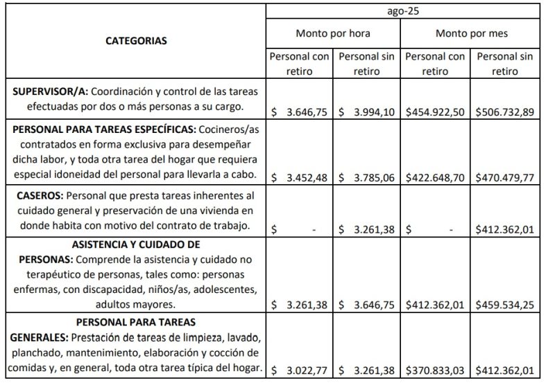 La Comisión Nacional de Trabajo en Casas Particulares (CNTCP) estableció incrementos en las remuneraciones mínimas para el personal de casas particulares, bajo el Régimen de la Ley N° 26.844.