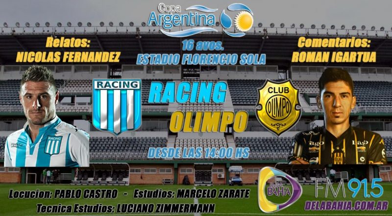 Olimpo-Racing, a jugarse el viernes a las 15 en Banfield y dirigido por Ariel Penel, será transmitido por el equipo de De La Bahía FM 91.5, con los relatos de Nicolás Fernández y los comentarios de Román Igartúa.