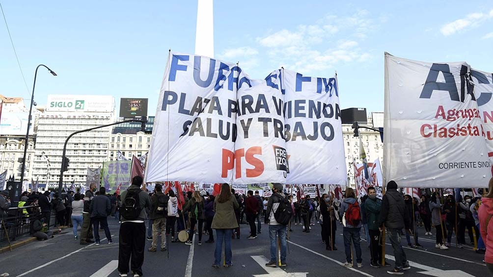 La movilización -organizada por el Movimiento Socialista de Trabajadores (MST), Barrios de Pie-Libres del Sur y el Partido Obrero (PO) entre otros- se concentraba en la intersección de las avenidas 9 de Julio y San Juan, en el barrio porteño de Constitución.