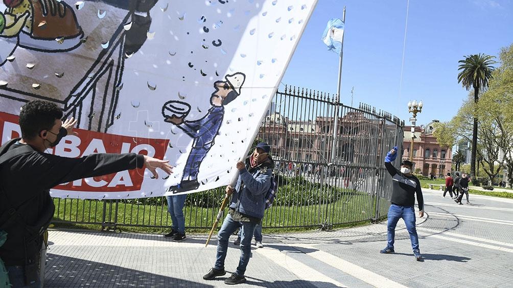Los manifestantes reclaman “ningún salario por debajo de la línea de pobreza y un salario mínimo, vital y móvil de 70 mil pesos”, así como “trabajo genuino y obra pública en los barrios”.