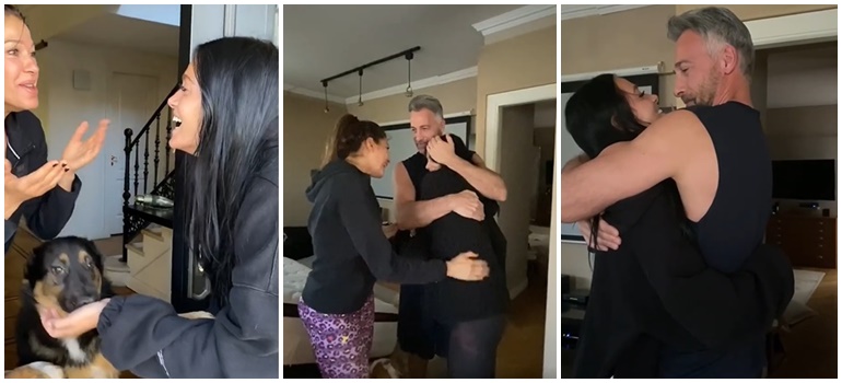 Pero la cantante decidió volver a la Argentina, y no le dijo nada a sus papás. Este miércoles, compartió un video de la sorpresa que le dio a Catherine, Ova y Tiziana al ingresar a su hogar.