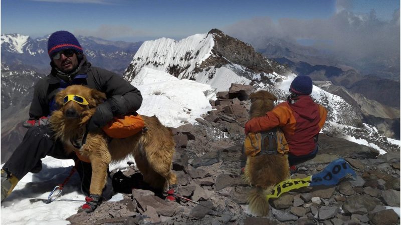 Oro se convirtió en perro guía tras subir dos veces al Aconcagua y próximamente al Denali, la montaña más fría del mundo en Alaska, junto a su dueño Ignacio Javier Lucero, .