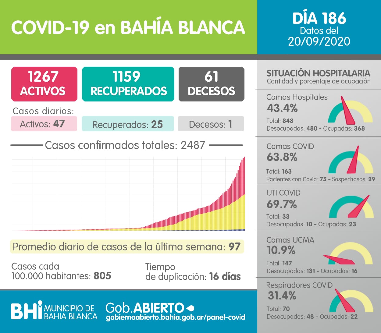 Un fallecido, 47 casos nuevos y 25 recuperados se registraron en las últimas horas en Bahía Blanca, según el Comité local de Contingencia.