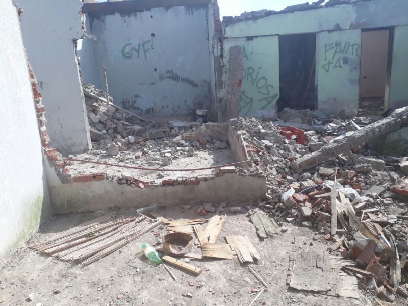Un joven sufrió una posible fractura en una pierna luego de que cayera sobre él una parte de una pared que estaba demoliendo.