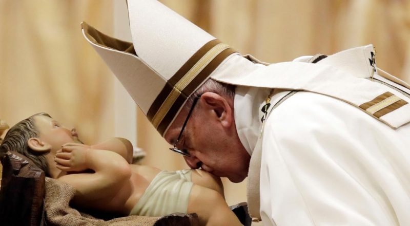 “El cuerpecito del Niño de Belén propone un modelo de vida nuevo: no devorar y acaparar, sino compartir y dar. Dios se hace pequeño para ser nuestro alimento. Nutriéndonos de él, Pan de Vida, podemos renacer en el amor y romper la espiral de la avidez y la codicia”, explicó.