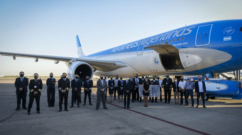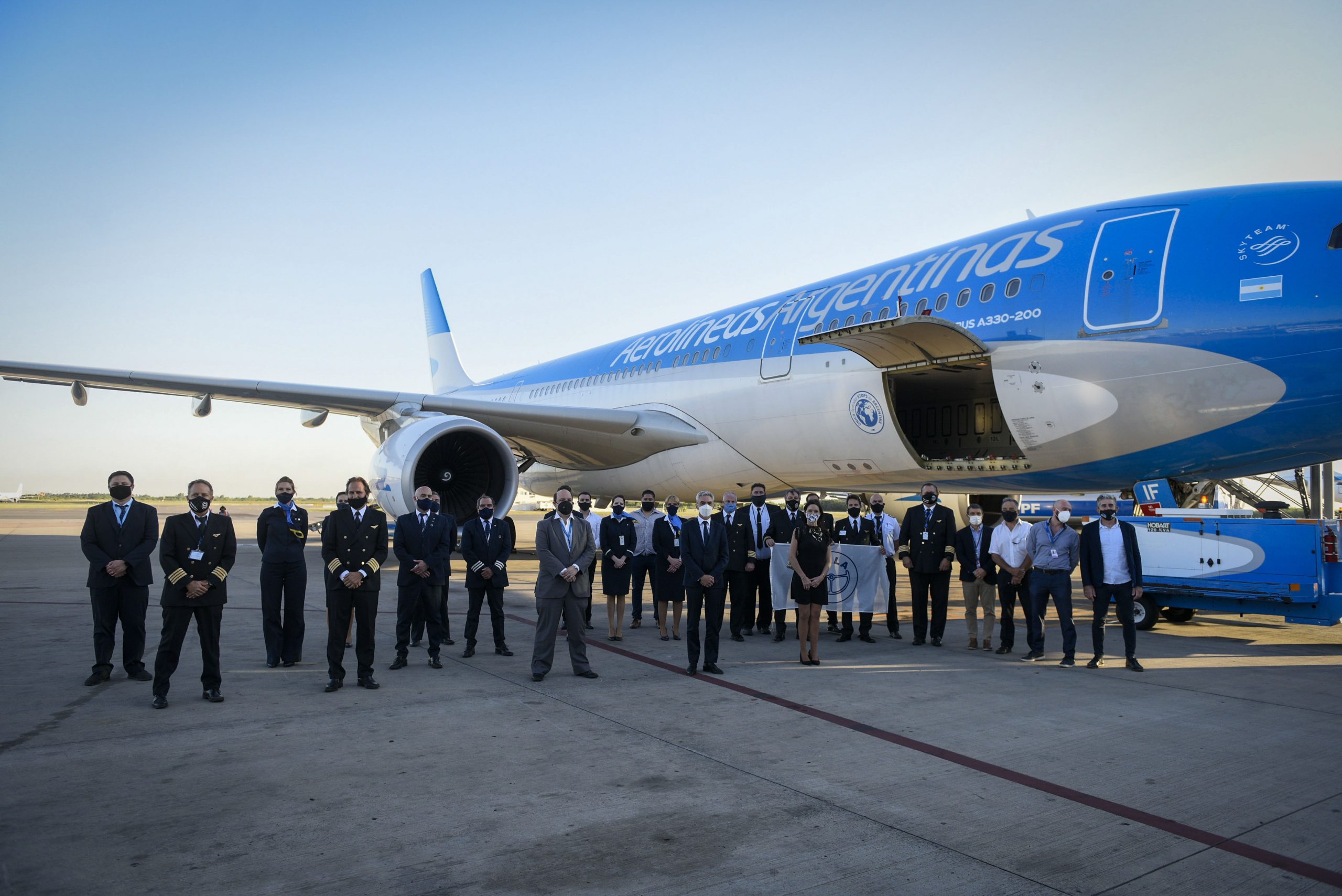 De acuerdo con lo informado, el avión Airbus 330-200, especialmente modificado en su interior para el transporte de las vacunas, partió con una tripulación compuesta por cuatro comandantes, cuatro copilotos y dos de “backup”, además de otros tripulantes de cabina y técnicos.