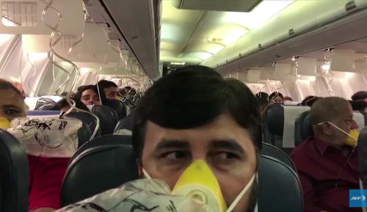Un video difundido en Twitter muestra una cabina en silencio con los pasajeros utilizando máscaras de oxígeno.