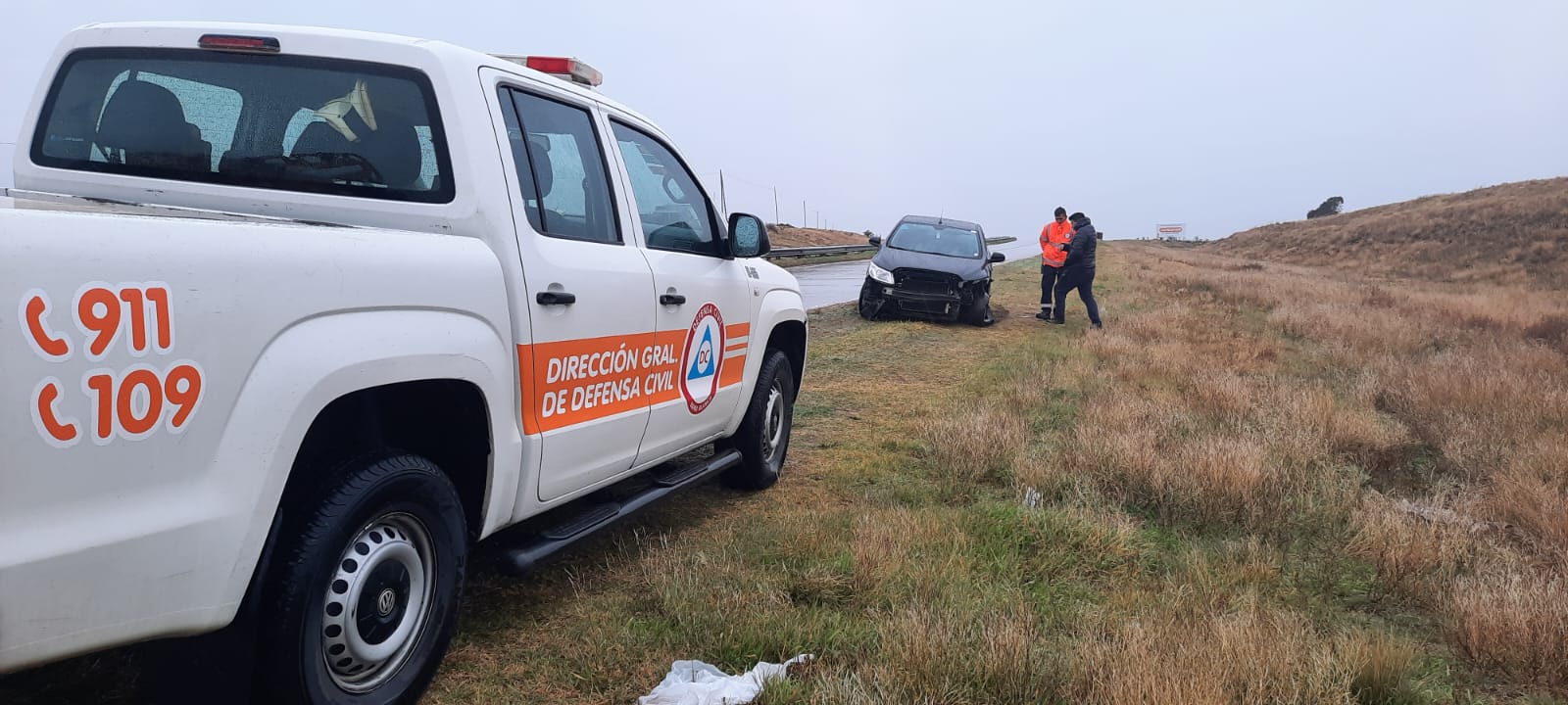 Un hombre de 35 años perdió el control del auto que manejaba luego de pasar sobre un sector de la ruta 3 que tenía agua acumulada y golpeó contra el guardarraíl.