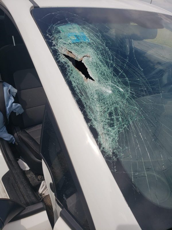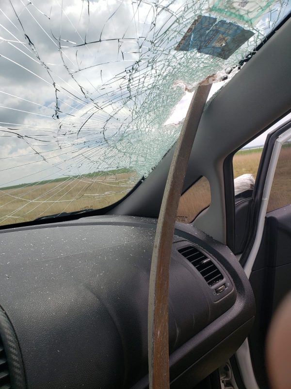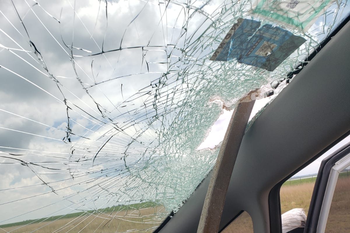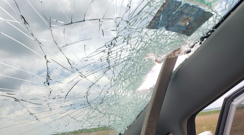 Peligro en la ruta 3: una varilla atravesó el parabrisas de un auto y casi mata a una mujer